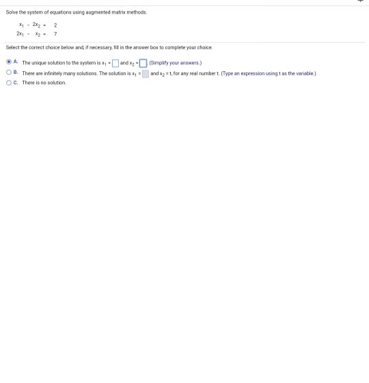 Solve Using Augmented Matrix Methods Chegg
