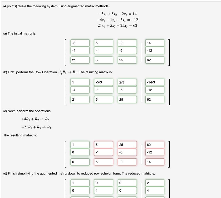 Solved 4 Points Solve The Following System Using Augmen Chegg Com